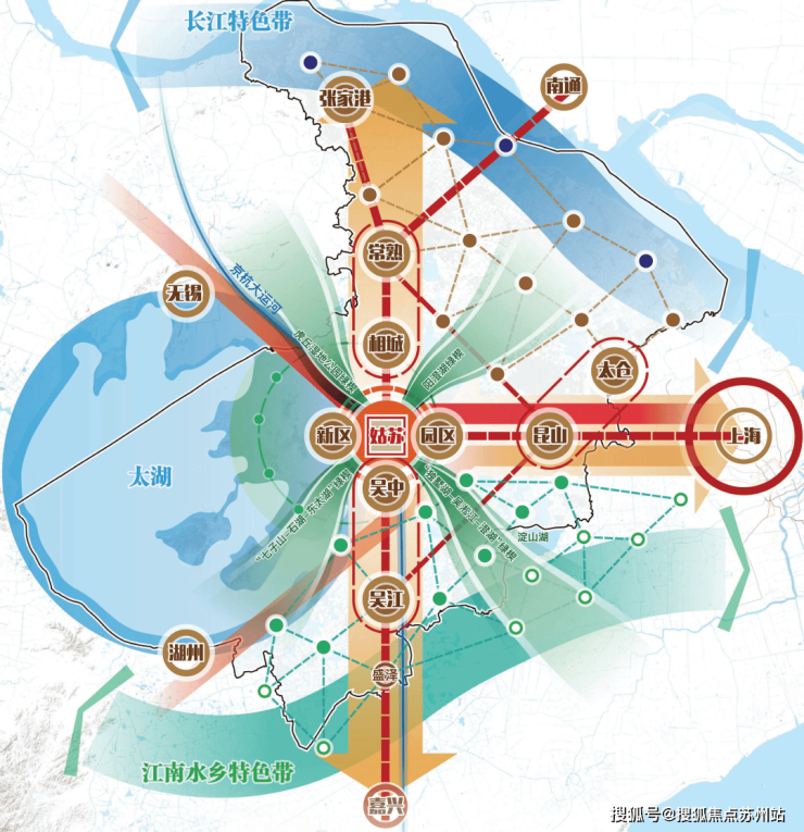 回顾苏州过去20年的发展,主要是依靠东西向的沪宁发展轴作为城市主动脉。然而,随着城市的发展,东西向的沪宁发展轴已经趋于饱和。现在,苏州的发展重点正转向南北向的通苏嘉甬发展轴,寻求新的发展空间。这一战略转变,为相城区带来了前所未有的发展机遇。